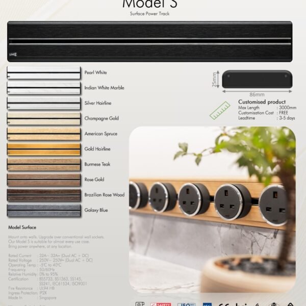 Line8 Power Track Model SL 800mm + 3 x Premium British Adaptor Package Deal (Without Installation)